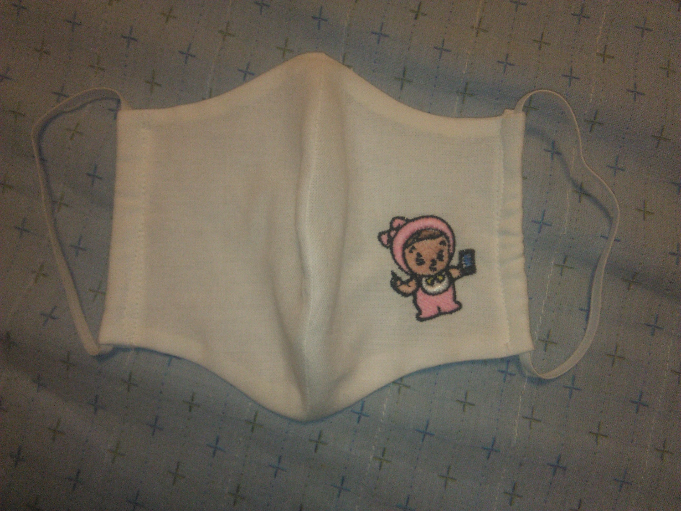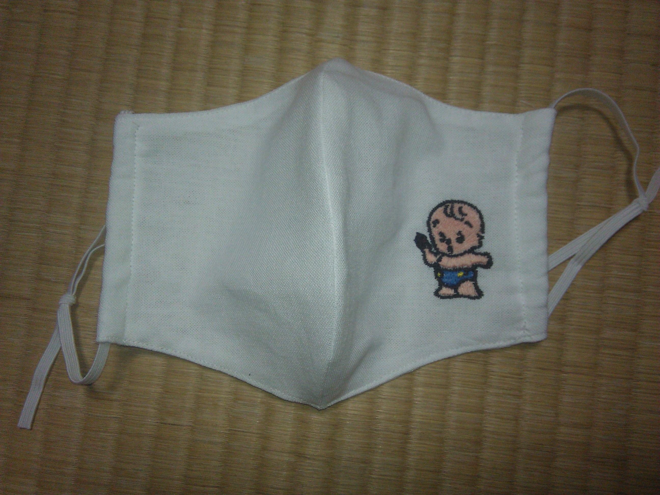 (下のマスクへのししゅうは、統計調査の